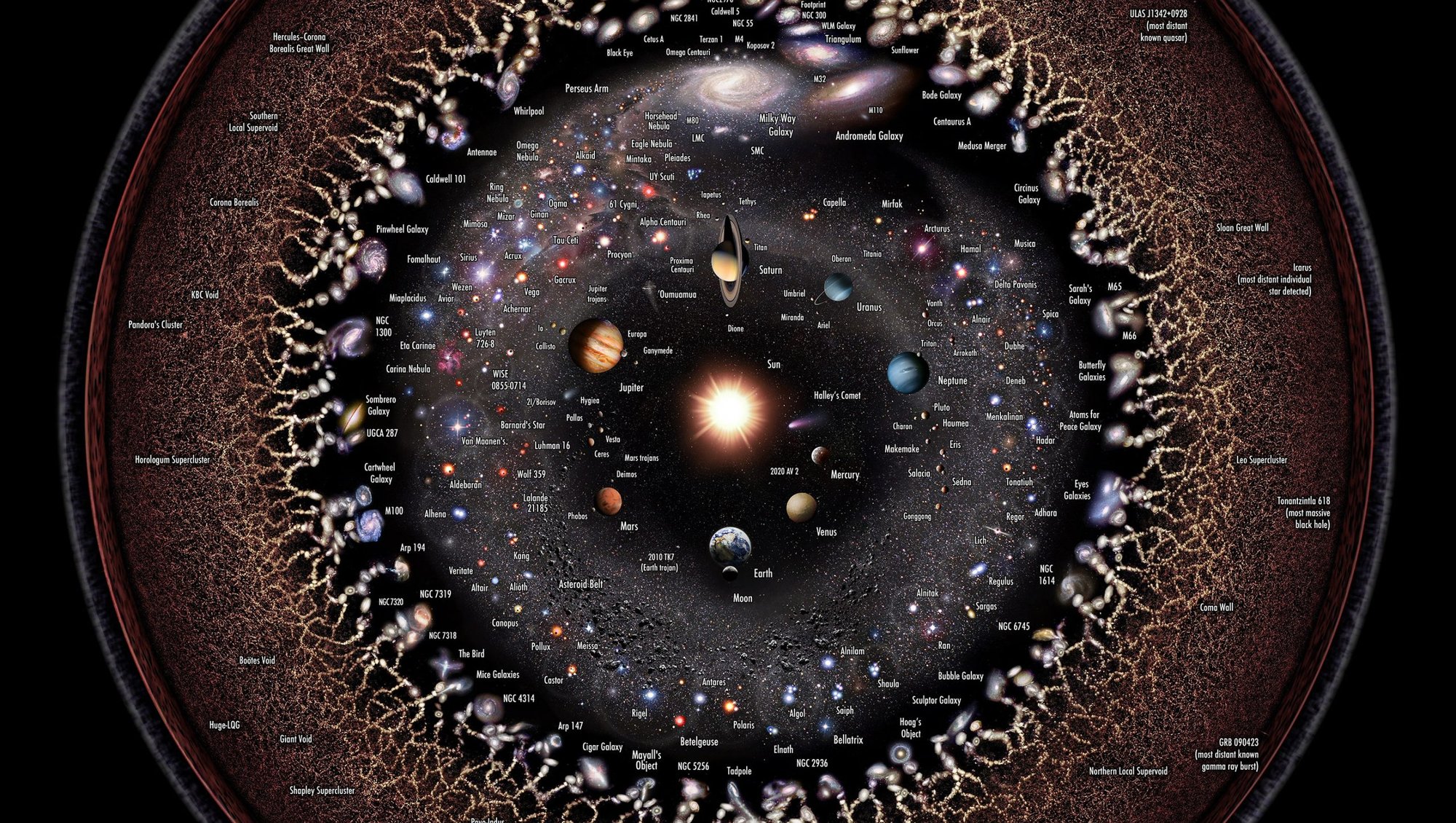 Gözlemlenebilir evren, gözlemcinin merkezinde bulunan küresel bir bölgedir. Bir bütün olarak evrenin büyük ölçekli özelliklerinin bilimsel olarak incelenmesi olan kozmoloji; evrenin kökenini, evrimini ve nihai kaderini anlamaya çalışır. Astronomi, fizik ve matematik gibi çeşitli bilimsel disiplinlerden yararlanarak evrenin doğası hakkında temel soruları ele alır.
