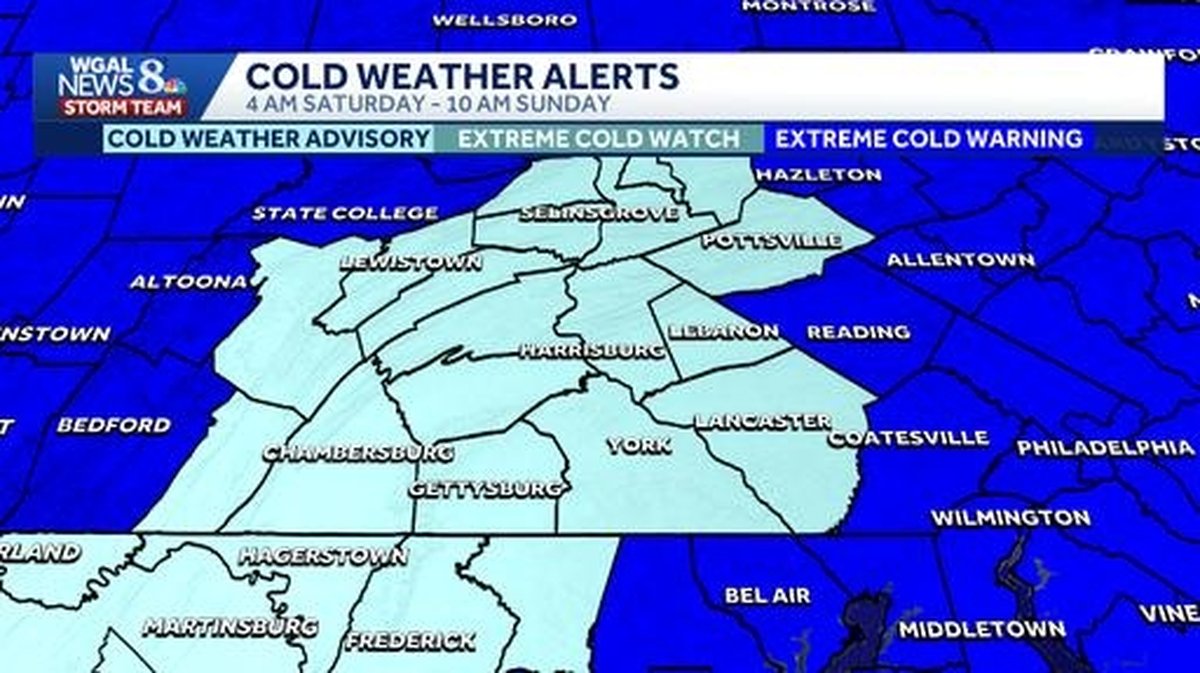 In central Pennsylvania, the NWS’s wind advisory covers a swath of counties including Mifflin, Juniata, Franklin, Union, Snyder, Montour, Northumberland, Columbia, Perry, Dauphin, Schuylkill, Lebanon, Cumberland, Adams, York, and Lancaster. The warning, effective from 4 a.m. to 10 p.m. Saturday, calls for northwest winds of 15 to 25 mph with gusts up to 55 mph. The weather service emphasizes, “Gusty winds will blow around unsecured objects. Tree limbs could be blown down and a few power outages may result. The dangerously cold wind chills as low as 20 below zero could cause frostbite on exposed skin in as little as 30 minutes.”