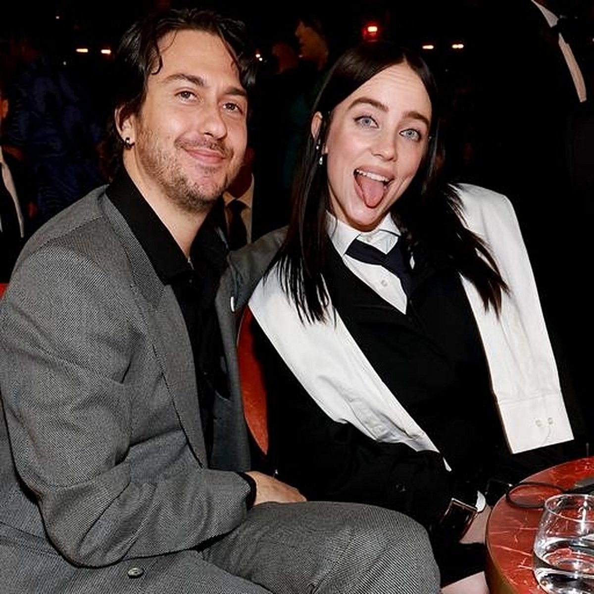 Fashion, as always, played a role in the night’s narrative. Eilish sported a striking HODAKOVA ensemble: a white shirt, black tie, black jacket and skirt, finished with white knee socks, black pointed-toe pumps, and a leather pouch, as reported by Page Six. Wolff complemented her look in a gray suit with a black button-up shirt. While Eilish walked the red carpet solo, inside the ceremony the two were inseparable, further fueling speculation about the depth of their relationship.