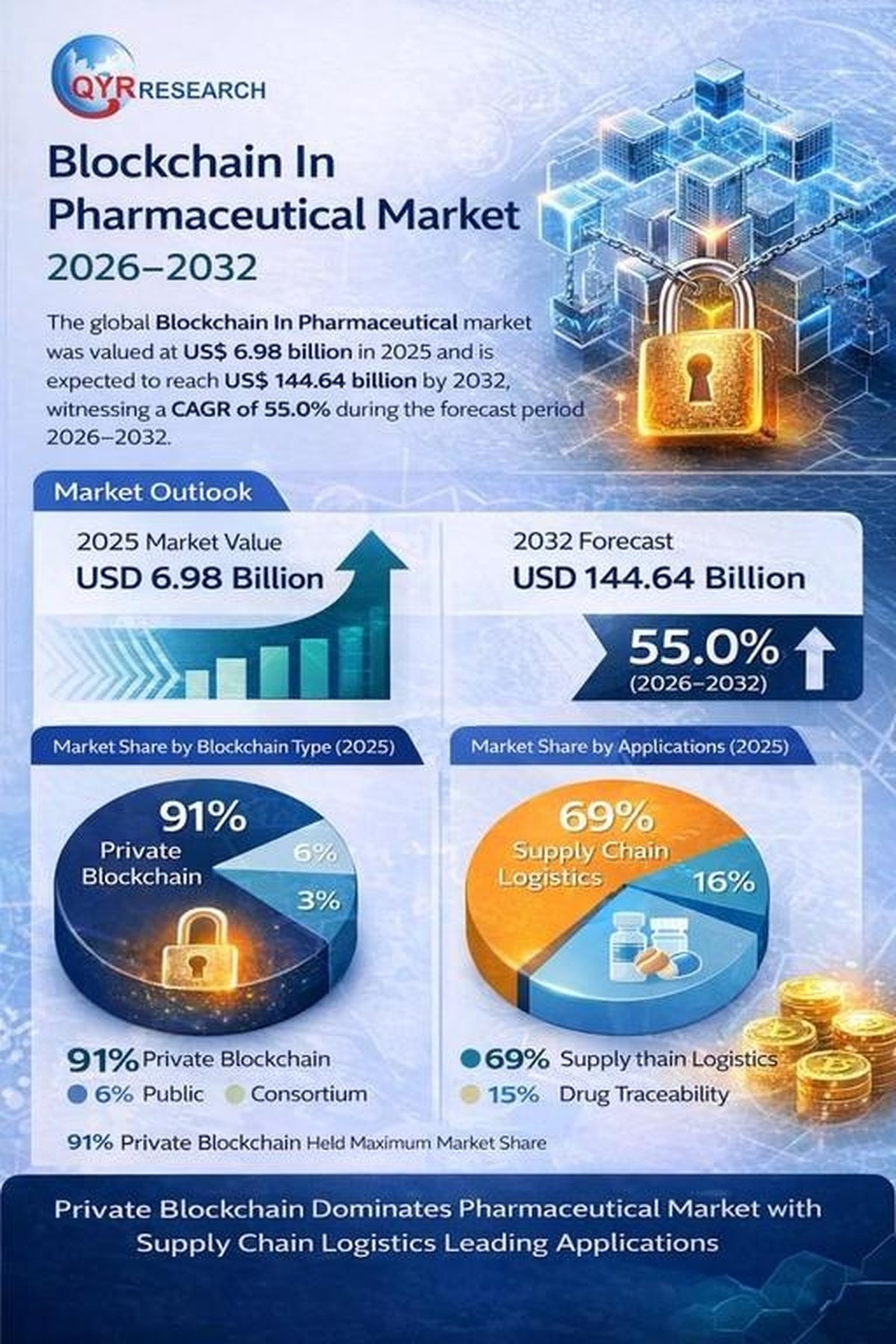 Yet, the excitement around blockchain is not limited to finance and tech. On February 13, 2026, QY Research Inc. released a landmark report projecting explosive growth for blockchain in the pharmaceutical sector. According to the report, the global Blockchain In Pharmaceutical market—valued at US$ 6.98 billion in 2025—is expected to soar to US$ 144.64 billion by 2032, boasting a staggering compound annual growth rate (CAGR) of 55.0% from 2026 through 2032.