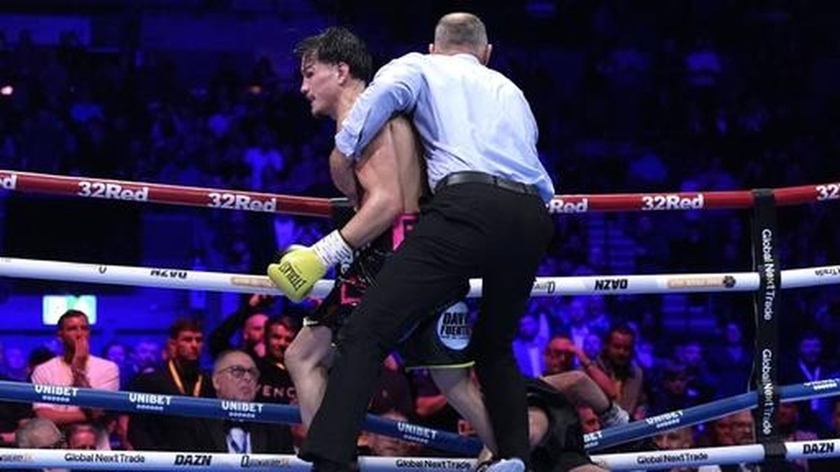 That moment came just seconds into the 12th and final round. Figueroa, sensing an opening, unleashed a clean left hook that crashed across Ball’s chin, sending the champion to the canvas. The M&S Bank Arena fell silent as Ball struggled to his feet, determination etched on his face. But Figueroa wasn’t finished. Smelling blood, he pressed forward, landing a left-right-left combination that sent Ball tumbling through the ropes. Referee Steve Gray gave Ball every chance to recover, but it was clear the champion could not continue. The fight was waved off just 32 seconds into the round, crowning Figueroa the new WBA featherweight king.