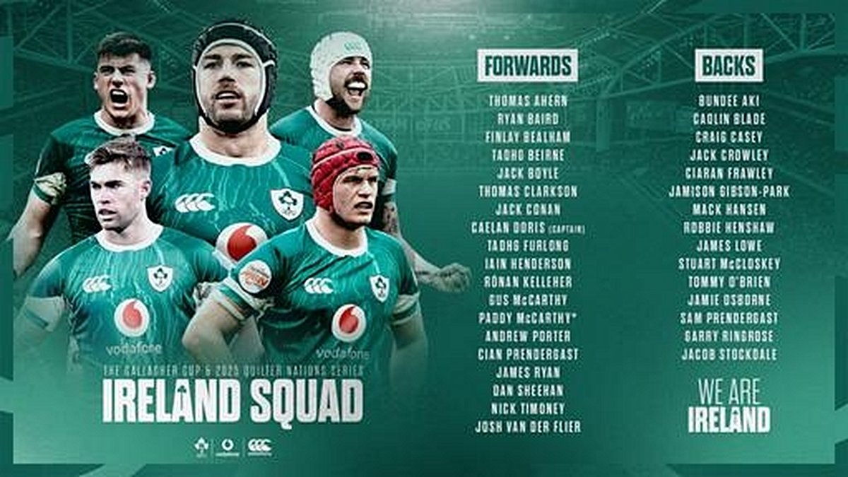 The full Ireland squad, as named by Farrell, reflects a careful balance of experience and youth. Among the backs are Bundee Aki, Caolin Blade, Craig Casey, Jack Crowley, Ciaran Frawley, Jamison Gibson-Park, Mack Hansen, Robbie Henshaw, James Lowe, Stuart McCloskey, Tommy O’Brien, Jamie Osborne, Sam Prendergast, Garry Ringrose, and Jacob Stockdale. The forwards include Thomas Ahern, Ryan Baird, Finlay Bealham, Tadhg Beirne, Jack Boyle, Thomas Clarkson, Jack Conan, Caelan Doris (captain), Tadhg Furlong, Iain Henderson, Ronan Kelleher, Gus McCarthy, Paddy McCarthy, Andrew Porter, Cian Prendergast, James Ryan, Dan Sheehan, Nick Timoney, and Josh van der Flier.