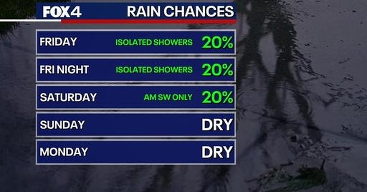 By Sunday, change was once again in the air. South winds and sunshine were forecast to return, sending temperatures back into the low 80s. The warm-up looked set to continue into the following week, with highs on Monday and Tuesday potentially approaching 90 degrees. The National Weather Service and FOX 4 both highlighted the likelihood of a more active weather pattern developing as a ridge of high pressure shifted east, allowing disturbances from the west to bring renewed chances for showers and thunderstorms starting midweek.