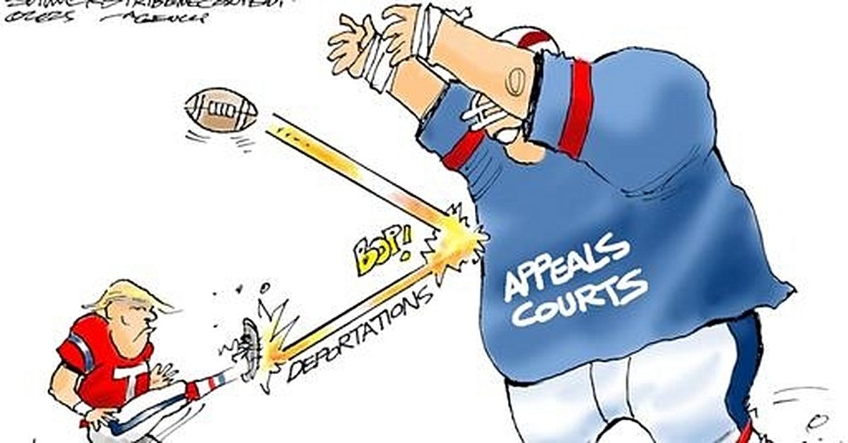 But as legal challenges mounted, the administration’s use of the Alien Enemies Act ground to a halt. Since mid-March, no further deportations have been carried out under the law, as courts across the country weighed the legality of the president’s actions. The Dallas Morning News even published an editorial cartoon titled “Deportations block,” capturing the growing sense of legal and political gridlock surrounding the issue.