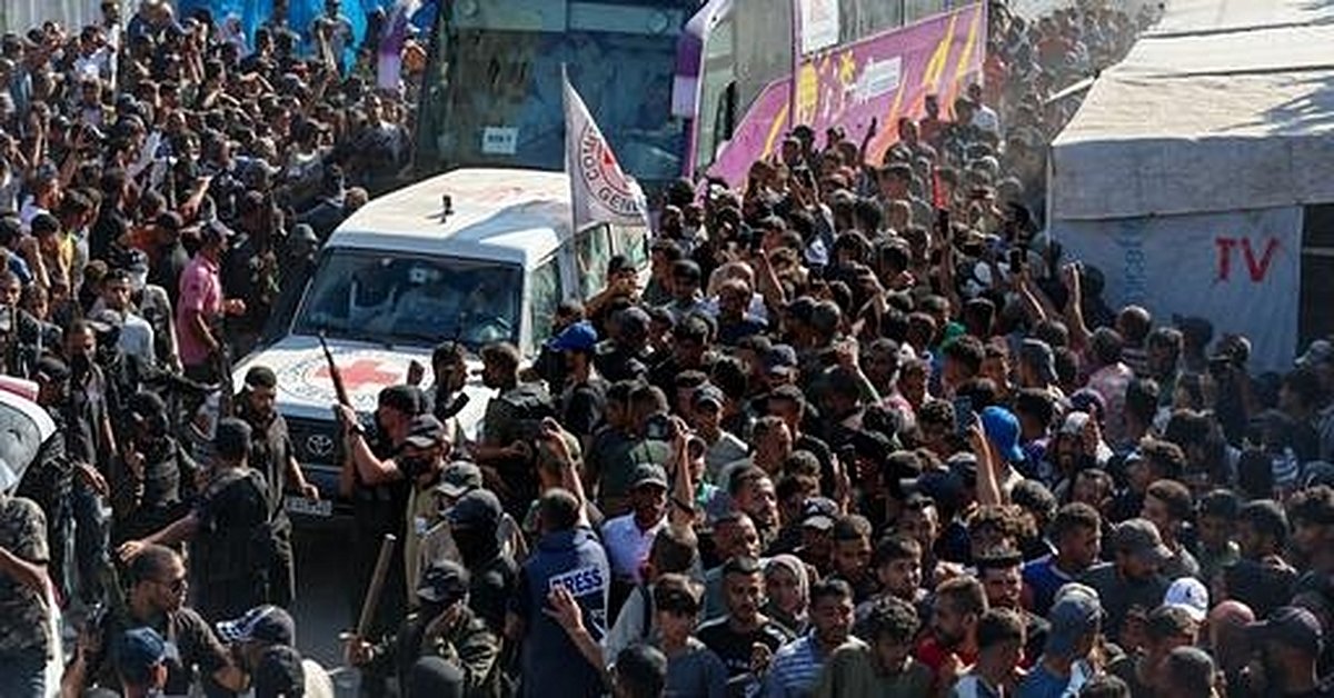 In Beitunia, a town in the Israeli-occupied West Bank, and in Khan Younis in Gaza, jubilant crowds gathered to greet the freed Palestinian prisoners. According to the Associated Press, many of the returnees flashed V-for-victory signs as they descended from International Committee of the Red Cross buses. Some were hoisted onto people’s shoulders, draped in traditional keffiyeh scarves—a symbol of Palestinian pride and resistance. Others, visibly gaunt and exhausted, simply sank into chairs, overwhelmed by the ordeal they had endured.