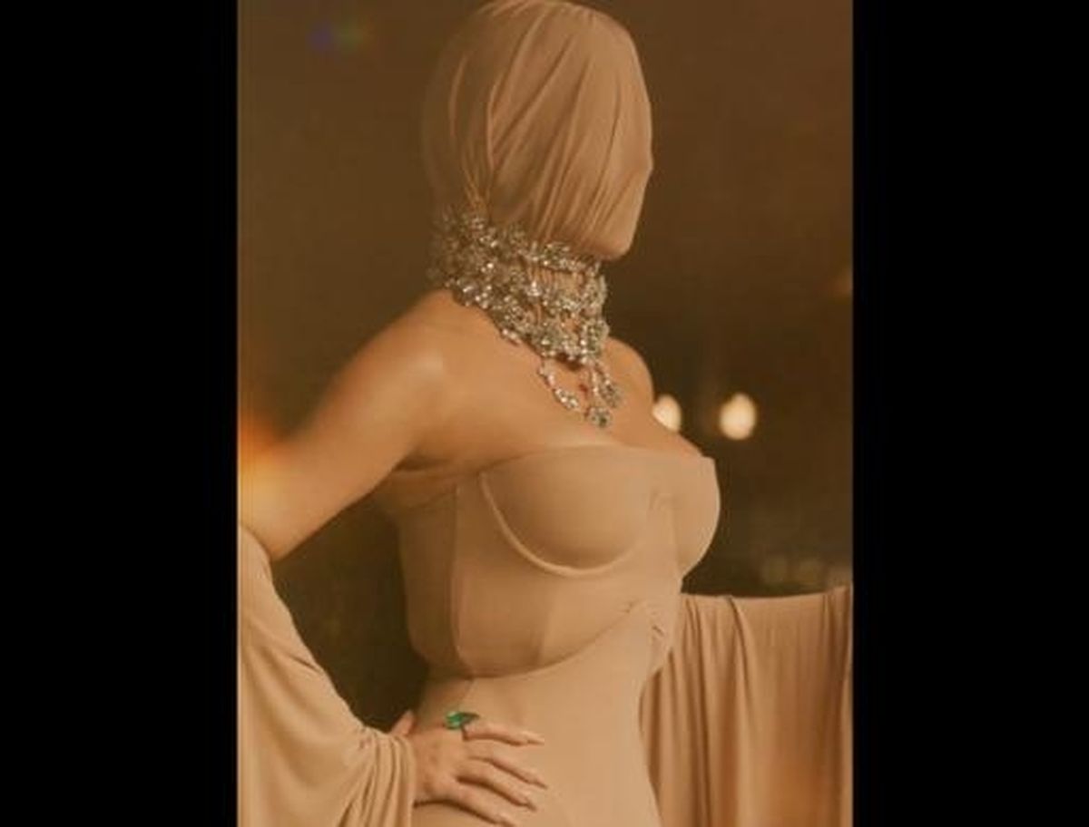 Yet the masked gown wasn’t the only headline-grabbing move Kardashian made that week. Earlier, she introduced the SKIMS Bush, a thong featuring fake pubic hair in various shades as part of her ever-expanding underwear line. The product—a sliver of fabric adorned with a full bush of faux hair—sparked its own wave of commentary and memes, with some fans again drawing comparisons to the eccentric style choices of Kanye West.