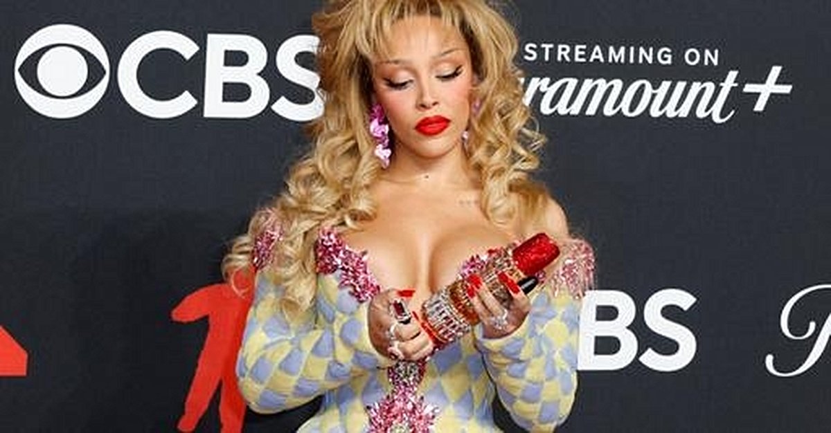 Doja Cat, never one to shy away from spectacle, kicked off the show with a performance of “Jealous Type” that had the crowd roaring. Her red carpet look—a harlequin-print mini dress by Balmain—was a nod to both the 1980s and Dolly Parton, as she told The New York Times. The night’s fashion, as always, was a conversation starter. From feathered boas and bedazzled coffee cups to bold, lacy gowns and puffer coats, the VMAs red carpet was a playground for self-expression. Audrey Nuna’s poofy coat and bowlike braids, Sombr’s embroidered Valentino jacket, and Rosé’s white dress with safety pin detailing all turned heads. Even a Labubu doll dressed as a Moon Person statuette made an appearance, courtesy of designer Marko Monroe.