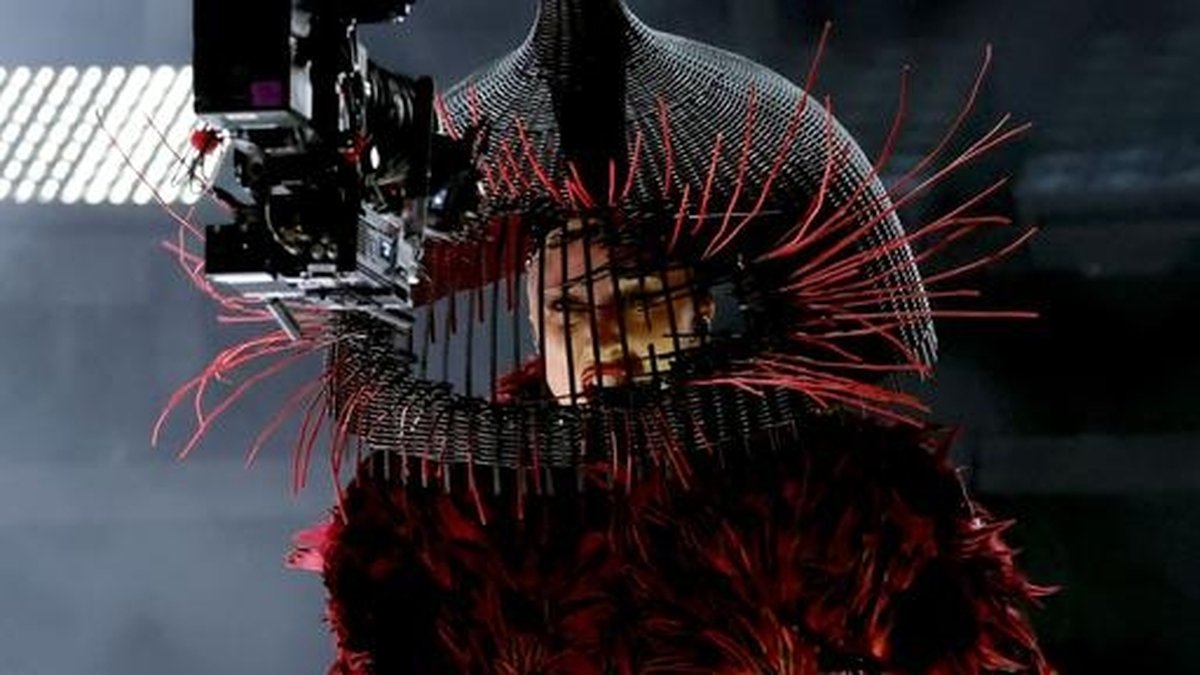 As she emerged, Gaga shouted, "Grammy Awards, put your paws up!"—a rallying cry for her devoted fans, affectionately dubbed Little Monsters. Dressed in a dramatic red and black feathered ensemble, featuring a sculpted skirt from Alexander McQueen’s "Horn of Plenty" collection and a basket-like wicker headpiece by Philip Treacy, she looked every bit the avant-garde icon. Her face was partially concealed by a cage-like dome, a visual metaphor that did not go unnoticed. According to Billboard, the outfit included a black, basketlike helmet with red strings, and her torso was wrapped in feathers, above a long black leather skirt.
