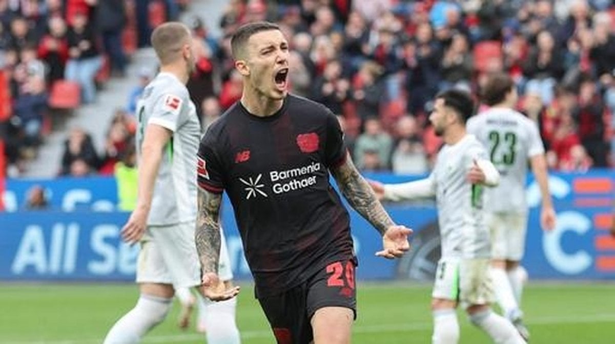 But the first-half drama wasn’t done. Just before the break, Ezequiel Fernández found Grimaldo in space, and the Spaniard made no mistake, curling a precise finish past Grabara for his second of the evening. Leverkusen had a lifeline, trailing 3-2 at the interval but with momentum shifting their way.