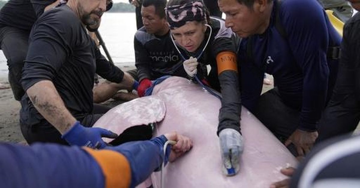 Fernando Trujillo, a marine biologist who leads the effort and heads the Omacha Foundation, kneels beside each dolphin’s head, shielding its eye with a cloth and speaking in low tones. “They’ve never felt the palm of a hand. We try to calm them,” Trujillo told AP, adding, “Taking a dolphin out of the water, it’s a kind of abduction.”