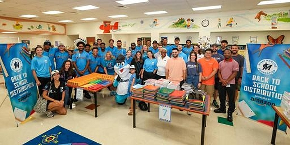 While the debate over Suite 18’s use simmers, the Miami Marlins Foundation has been busy making a different kind of impact in the community. From August 14 to August 19, the Foundation’s annual back-to-school initiative provided essential supplies to more than 10,000 elementary school students across Miami-Dade and Palm Beach Counties. The effort, organized in partnership with the Kiwanis Club of Little Havana, included four distribution events at local schools. At Kensington Park Elementary School on August 19, Marlins shortstop Otto Lopez, his wife, and baby daughter joined Marlins President of Business Caroline O’Connor, PNC Bank’s Southeast Florida President Cressman Bronson, and a team of volunteers to hand out notebooks, pencils, and even tickets to Marlins games.