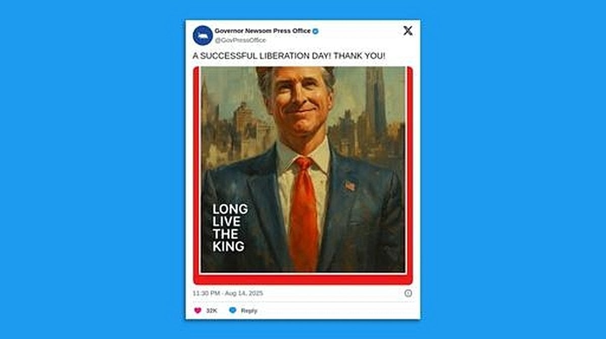 Newsom’s campaign against Trump and Republican gerrymandering has not been confined to legislative proposals. Over the past week, his press office has taken to social media, mimicking Trump’s signature all-caps style and bombastic tone. According to Axios, the posts have included lines like, “DONALD IS FINISHED — HE IS NO LONGER ‘HOT,’” and “LIBERATION DAY FOR AMERICA,” referencing California’s proposed new congressional maps. The tweets, signed “GCN” as a riff on Trump’s “DJT,” have lampooned everything from Trump’s polling numbers to his use of “the little baby stairs” on Air Force One.