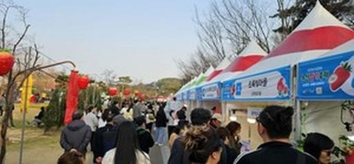 Foodies found plenty to savor as well. Booths selling strawberry-based desserts, including those developed by Konyang University students and special offerings from Hwaji Market, saw long lines. The iconic bakery Sungsimdang drew crowds with its strawberry-infused breads and cakes, while a couple who finally snagged a popular dessert declared, “It’s delicious. Waiting in line was worth it!”