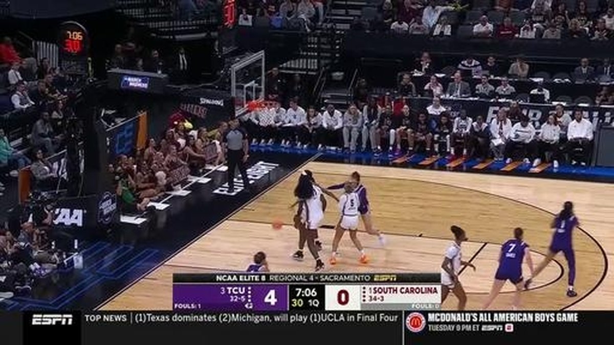 But TCU wasnt just happy to be there. The Horned Frogs, a #3 seed, were chasing their first-ever trip to the Final Four and had plenty of momentum after a gutsy 79-69 win over Virginia in the Sweet 16. Marta Suarez and Olivia Miles had been the heroes in that game, combining for 61 pointsSuarez notching a 33-point, 10-rebound double-double and Miles shooting a blistering 78% from the field while also grabbing 10 boards. TCU had also shown a knack for second-half surges, like their 17-4 run to start the third quarter against Virginia. Their stars would need to shine brighter than ever to keep pace with the Gamecocks.