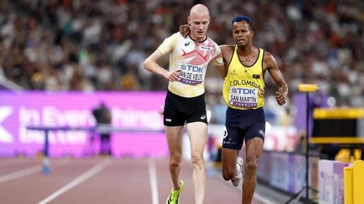 Tim Van de Velde’s act of sportsmanship helps Carlos San Martin complete the 3,000m steeplechase heat after both athletes suffer setbacks at the World Athletics Championships.