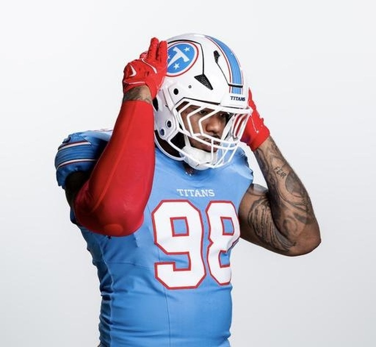 The new uniforms themselves are a masterclass in blending history with present-day identity. Home jerseys showcase the Titans’ signature light blue, with “Titans” emblazoned across the chest in a bold, woodblock-inspired font—a subtle homage to Nashville’s creative spirit. The road uniforms, meanwhile, are crisp white with “Tennessee” stitched across the breastplate, a detail designed to represent the state when the team hits the road. Both sets feature red trim around the numbers and a color scheme that unmistakably echoes the beloved Houston Oilers throwback uniforms, paying tribute to the franchise’s origins before its move to Tennessee.