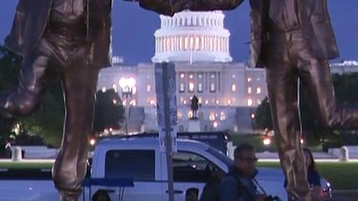 The return of the statue follows a turbulent week in which it was abruptly removed by the National Park Service (NPS) for violating permit rules. The Department of the Interior, which oversees NPS, told CNN that the statue was taken down because "it was not compliant with the permit issued." Specifically, the 12-foot-tall sculpture exceeded the height limitations stipulated in its permit. The removal was swift and, according to the artists, damaging; the figures were reportedly ripped from their pedestals and broken into pieces. Undeterred, "The Secret Handshake" recovered the statue and painstakingly reassembled it, visible marks of the ordeal still etched into its surface.