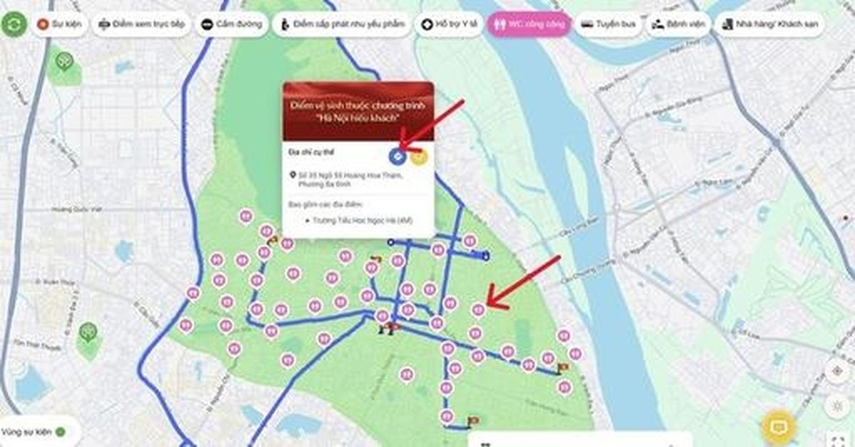 For those navigating the city during the days of rehearsal and the main event, the platform is a game changer. Not only does it show the precise route of each parade block, but it also highlights essential amenities and services. Over 1,000 free public toilets have been arranged by Hanoi authorities to accommodate the influx of spectators—612 of which are newly installed mobile units, supplemented by approximately 400 toilets mobilized from local agencies, schools, and street-level residences. These facilities are clearly marked on the interactive map with distinctive pink circular icons, ensuring that visitors can quickly find the nearest restroom, a detail that might seem small but means a lot during a crowded, all-day event.