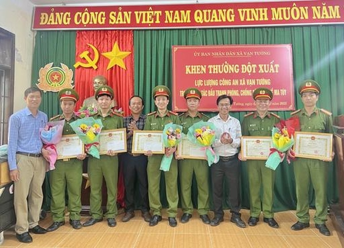 But the story of swift police action in Vietnam did not end there. Just days earlier, in Van Tuong commune, Quang Ngai province, police officers were recognized for their outstanding work in cracking down on illegal drug activity—a problem that has plagued many rural areas in recent years.