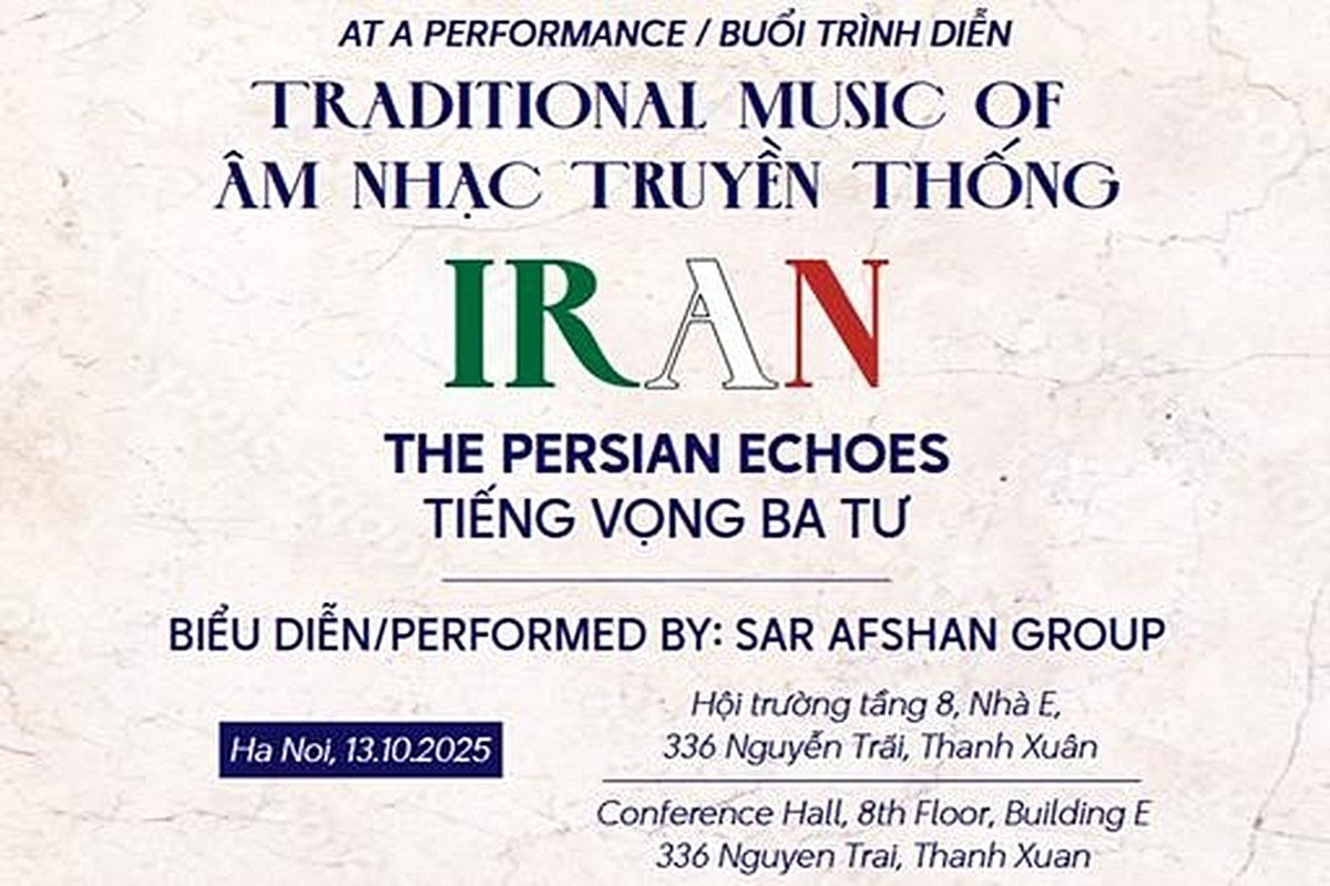 Meanwhile, the University of Social Sciences and Humanities is preparing to host a different kind of cultural dialogue. On October 13, 2025, at 9:00 AM, the university’s 8th-floor auditorium will resonate with the sounds of traditional Iranian music, performed live by the acclaimed ensemble Sar Afshan. This event seeks to introduce the Vietnamese public to the refined beauty of Iranian musical traditions and to strengthen the cultural ties between two ancient civilizations, Iran and Vietnam.