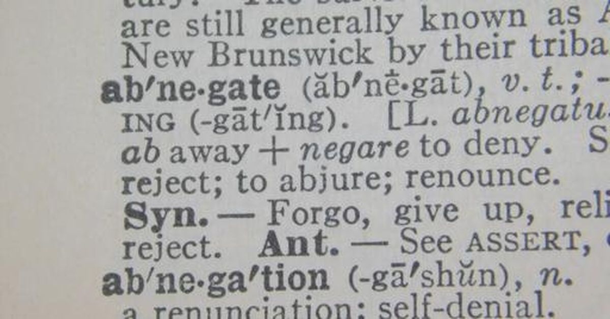 Abnegate – To renounce or reject (something desired or valuable). For example: “He abnegated the family inheritance to make a name for himself on his own.”