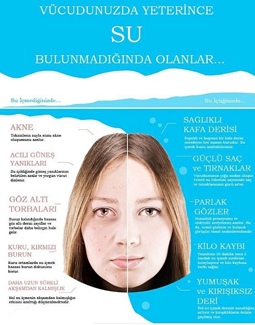 Yaşam için suyun vazgeçilemez bir unsur olduğunu biliyoruz. Bunun nedenlerini buradaki makalemizden okuyabilirsiniz. Vücutlarımızın %60-75 arası sudan oluşuyor. Ciğerlerimizin %90'ı, beynimizin %70'i, kanımızın %80'inden fazlası su!