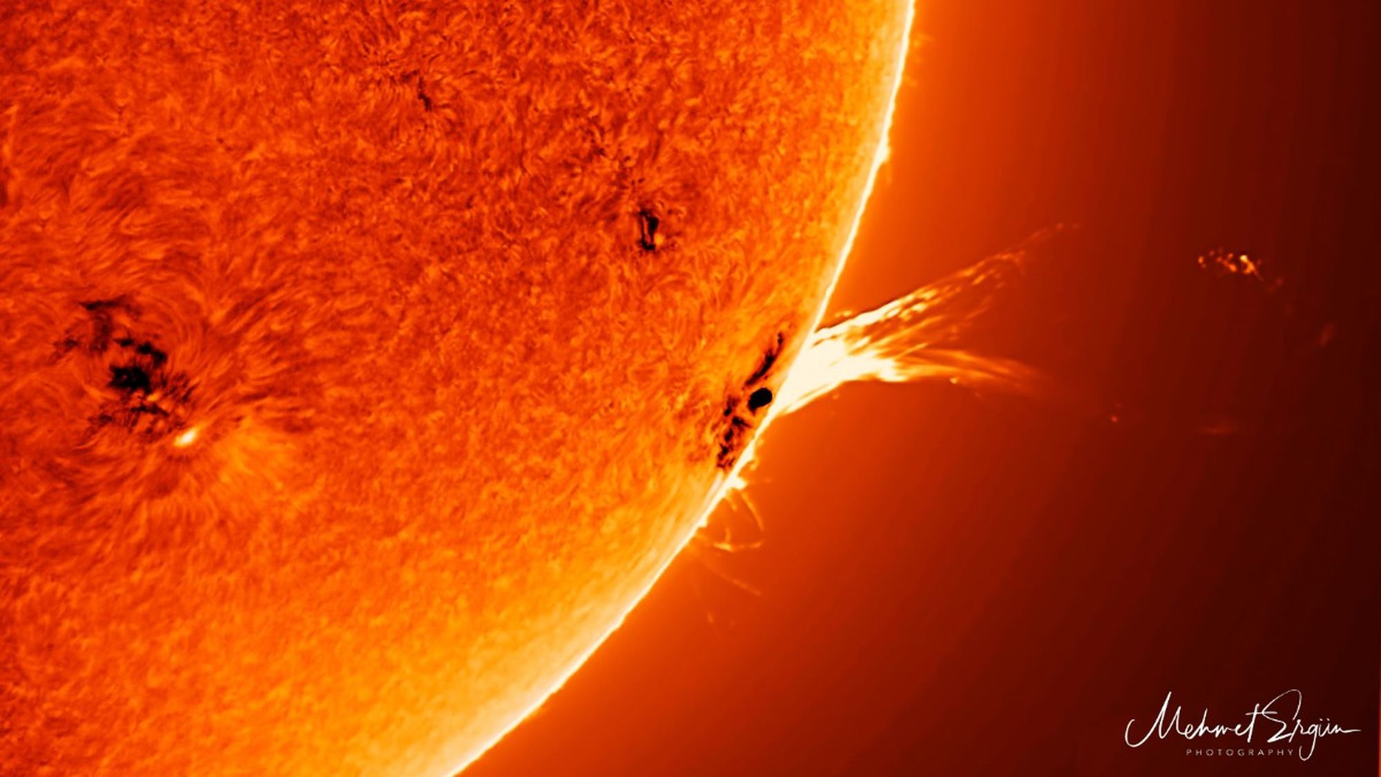 Güneş lekeleri, Güneş'in manyetik faaliyetinin daha yüksek olduğu bölgelerin belirteçlerinden birisidir. Genellikle bu bölgelerde, yukarıdaki fotoğrafta da görülen Güneş patlamalarının olması tesadüf değildir. Bu konuyla ilgili daha fazla bilgiyi buradaki yazımızdan alabilirsiniz.