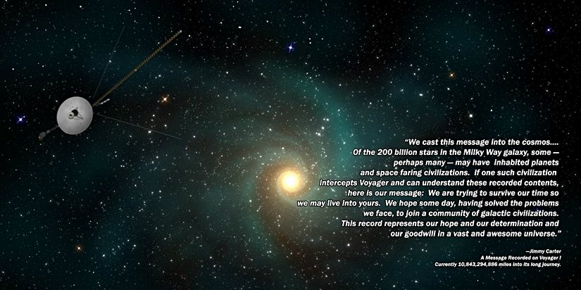 Universum olarak, Voyager görevlerini insanlık tarihinde yeni bir sayfa olarak görüyoruz. Yıldızlar-arası ortama ilk adımımızı attık, ve de bu adım ileride atacağımız daha büyük adımların sadece ilkidir. İlk habercimiz yıldızlar-arası ortamda bizi temsil etmek için dolaşmaya başladı. Artık sadece Güneş Sistemi’nde kapana kısılmış bireyler değiliz. Evren çok büyük, evinden dışarı ilk adımını atmış küçük bir çocuk gibiyiz. Sıcacık evimizi geride bırakıp karanlık, buz gibi havaya çıktık. Çok karanlık ve üşüyoruz, biraz da korkuyoruz. Ancak cesur olmalıyız. Nedenini ise büyük saygı duyduğumuz bir astronom söylüyor. Çünkü: “Oralarda bir yerde, inanılmaz bir şey keşfedilmeyi bekliyor.” (Carl Sagan)