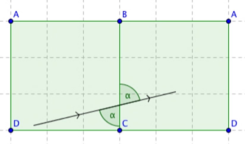 Karemizi BC kenarına simetrik olacak şekilde yansıtalım ve topun yörüngesini masanın yansıyan kopyasında devam ettirelim (makalenin başında üçgenlerle oluşturduğumuz mozaiği hatırlayalım).