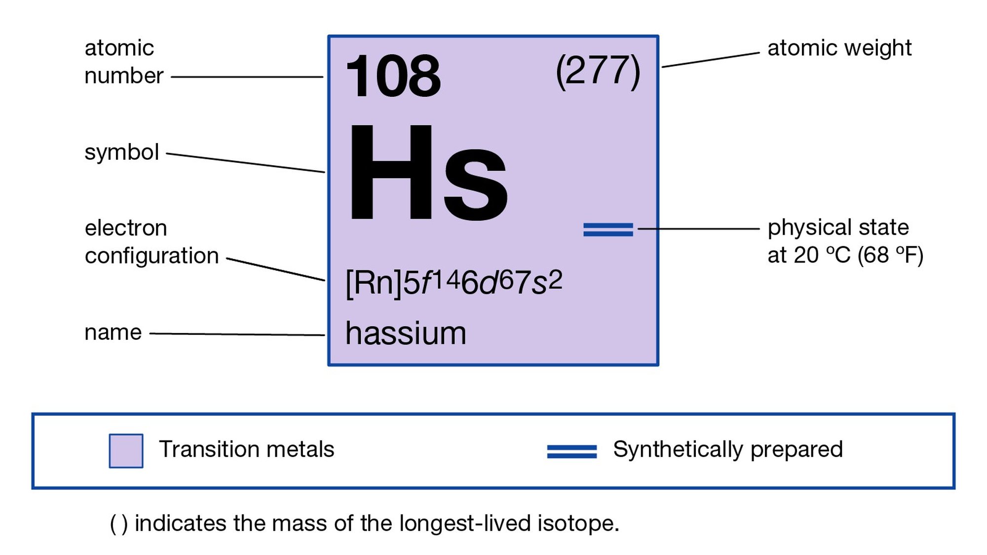 - Radyoaktif, sentetik bir element olan hassiyum, Dünya'da doğal olarak oluşmaz.