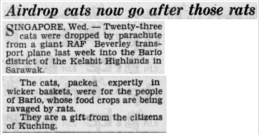 - N. Jo-lyn. In The 1950S, The British Raf Parachuted Cats Down Into Sarawak. Yes, Really.. (24 Haziran 2019). Alındığı Tarih: 8 Şubat 2021. Alındığı Yer: Current Issues Tambah Pedas | Arşiv Bağlantısı