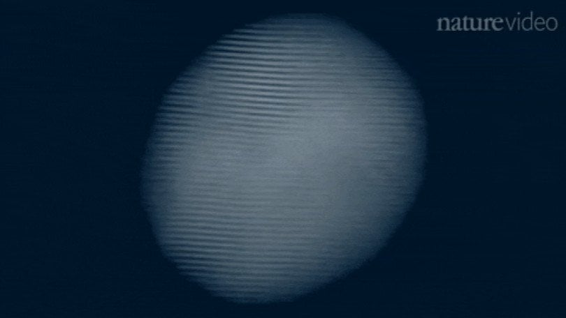 Elde edilen bilgi, tüm parçacığın üç boyutta yeniden oluşturulmasında kullanıldı, hem de daha önce görülmemiş bir ayrıntıyla. Bulanık gözükebilir ama bu parçacığın 27,000’den fazla atomdan oluştuğu düşünülüyor. Ve atomlar, bir kuş sürüsüne benzer şekilde hareket ediyor gibi görünüyorlar.
