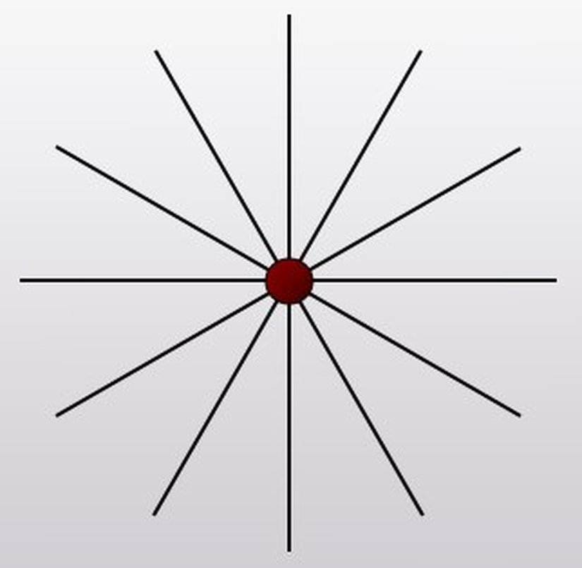 Önermek istediğim analojiye gelelim. Karanlık bir gecede, birisinin elinde bir lamba tuttuğunu düşünün. Bu kişi sizden uzaklaştıkça ters kare kanununa uygun olarak size gelen ışık miktarı azalacaktır. Lambadan gelen ışınların üç boyutlu olarak lambadan yayılışlarını hayal ettiğinizde bu çok mantıklıdır. Uzun menzilli kuvvetler de bu şekilde düşünülebilir. Tabii bu durumda ışık huzmelerinin yerini kuvvet çizgileri alıyor.