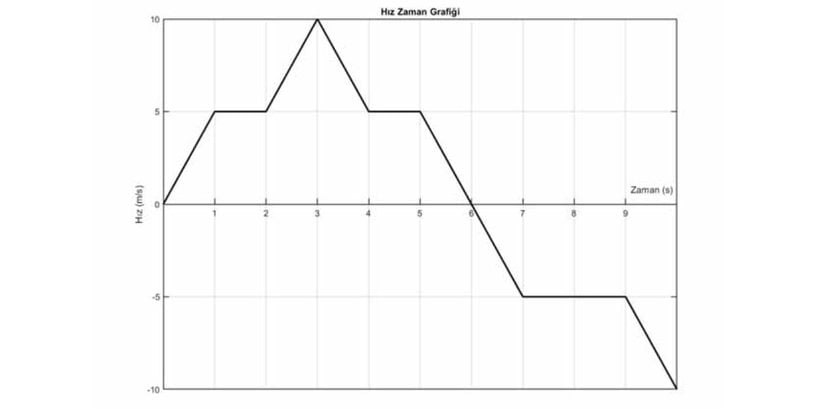 Aşağıdaki grafik bir hareketlinin hızının zamana göre değişimini göstermektedir. Buna göre hareketlinin 10 saniye sonunda aldığı yol ve yer değiştirme ne kadardır?