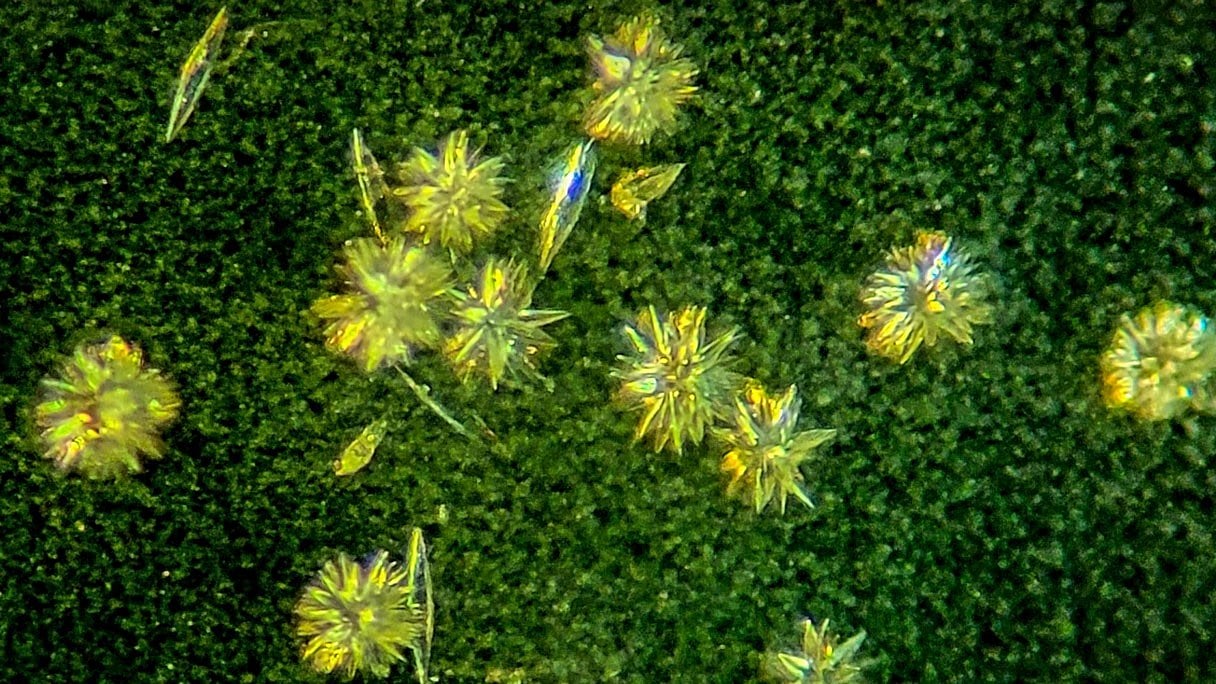 Şimdi, Sselov ve meslektaşları bu iki parçayı bir araya getirdiler. Manyetik yüzeylerin tek bir RAO kiral formunu destekleyip desteklemediğini merak ettiler. Bunu aydınlatmak için, Dünya'nın kabuğunda yaygın olarak bulunan manyetik bir mineral olan manyetite yöneldiler. Güçlü bir dış manyetik alan uygulayarak manyetitte elektron spinlerini hizaladılar ve manyetizmasını güçlendirdiler. Manyetit yüzeyini, sağ ve sol elli RAO moleküllerinin eşit karışımını içeren bir çözeltiye maruz bıraktıklarında, üstüne yerleşen moleküllerin %60'ının tek elli olduğunu gördüler. Araştırmacıların Science Advances'ta bildirdiğine göre, bu, benzer elli RAO'ların bağlanmasına neden olan ve sonunda saf tek elli RAO kristalleri oluşturan kristal bir tohum yarattı.[1] Manyetik alanın yönünü değiştirdiklerinde ve deneyi tekrarladıklarında, tam tersi yönlü kristaller şekillendi. Şu anda University College London'da olan Powner şöyle diyor: