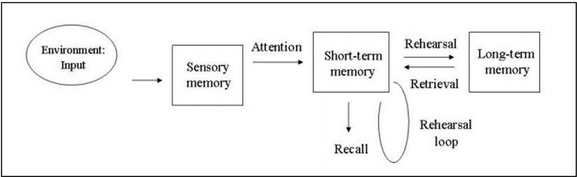 1968 yılında Atkinson ve Shiffrin tarafından sunulan bu model aslında yüzeysel olarak hepimizin aşina olduğu kavramların arasındaki ilişkilerin açıklandığı bir modeldir.