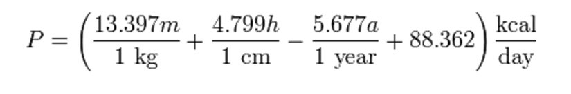 1984 Harris-Benedict eşitliği gözden geçirilmiş ve yeni formül kullanılmaya başlanılmıştır. Buna göre erkekler için BMR: