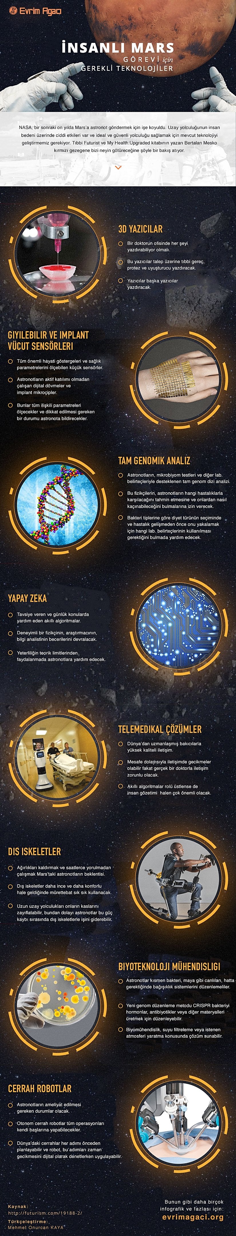 Bu nedenle sizler için, Mars'a ayak basmak için ihtiyacımız olan teknolojilerin kısa bir listesini barındıran bu görseli düzenledik.