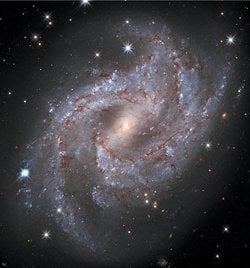 Büyük ve güzel sarmal galaksi NGC 2525, Samanyolu’ndan 70 milyon ışık yılı uzaklıkta bulunuyor. Geceleyin Dünya’dan bakıldığında, güney takımyıldızı Pupa’nın sınırları içinde gökyüzünde parıldıyor. Yaklaşık olarak 60.000 ışık yılı genişliğinde olan galaksinin Hubble Uzay Teleskobu tarafından kaydedilen bu görkemli fotoğrafında karanlık toz bulutları, devasa mavi yıldızlar ve pembe yıldız oluşum bölgeleri ile kaplı sarmal kolları görülüyor. 2018’in Ocak ayında NGC 2525’in eteklerinde görülen süpernova SN 2018gv, görüntünün sol altındaki en parlak yıldızdır. Bir yıl süren Hubble gözlemlerinin hızlandırılmış hali, beyaz cüce bir yıldızın yakınındaki başka bir yıldızdan malzeme toplamasıyla tetiklenen nükleer yıldız patlamasını ve git gide sönükleşerek gözden kaybolmasını gösteriyor. Tip Ia süpernova olarak tanımlanan nesnenin parlaklığı, kozmik standart bir mum olarak kabul edilir. Tip Ia süpernovaları galaksilerin uzaklıklarını ölçmek ve evrenin genişleme hızını belirlemek için kullanılır.
