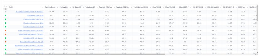 Bu, nispeten yeni bir gösterge tablosu; bu nedenle yakında daha fazla modelin ekleneceğini varsaymak doğru olur. Ama daha şimdiden birden fazla dil görevinde 7B modellerinin çoğunu içeriyor.
