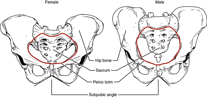 Diğer yandan, erkeklerde üst bacak kemiğinin kalça kemiğiyle buluştuğu acetabulum adı verilen eklem çukuru daha geniş ve derin olup, kadınlarda ise bu yapı daha dar ve sığdır.