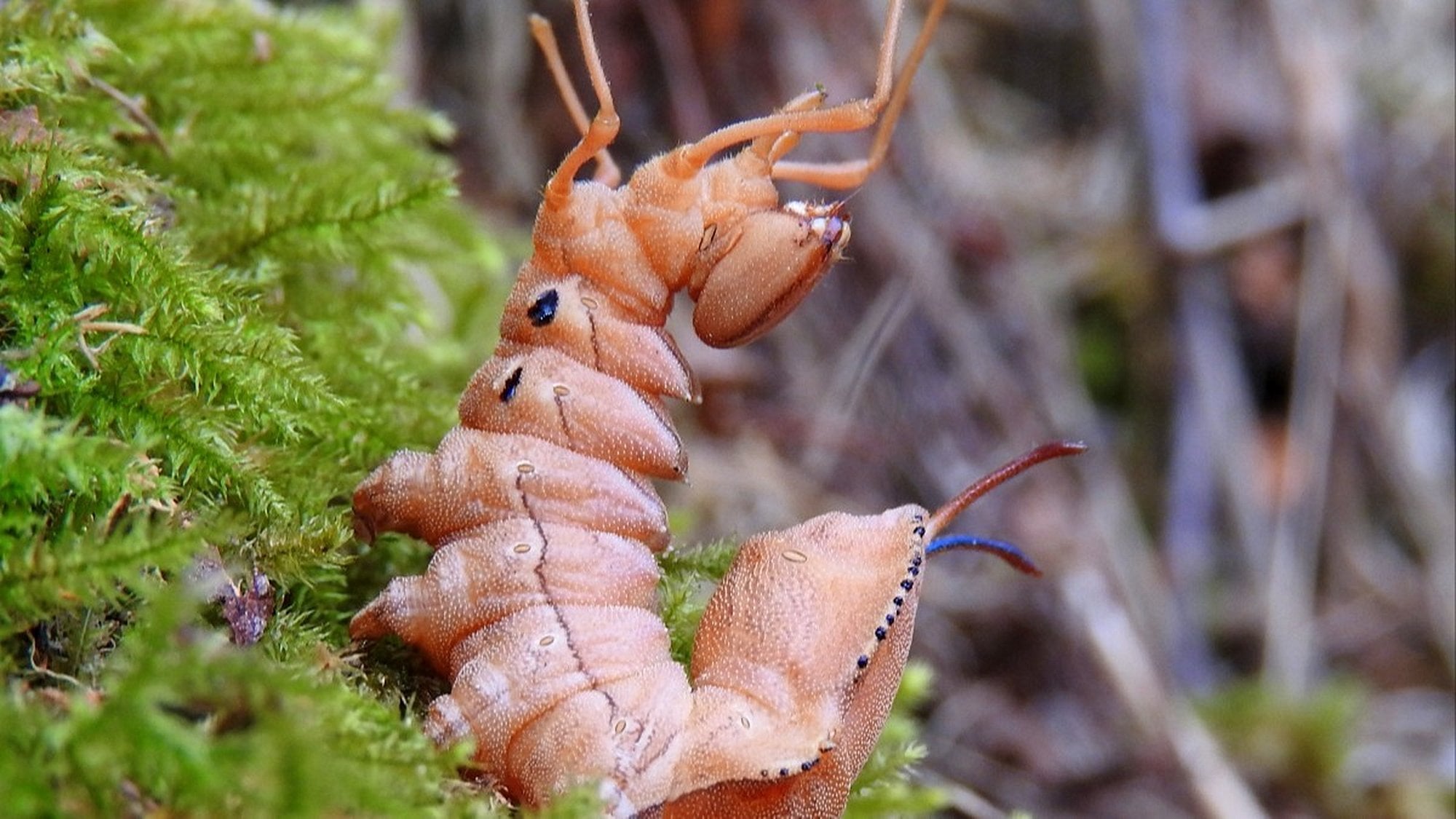 - Istakoz güvesi (Stauropus fagi) tırtılları, uzun bacakları ve şişkin anal segmenti ile karınca benzeri hareket ederek savunma davranışı sergiler ve mükemmel kamuflaj sağlar.