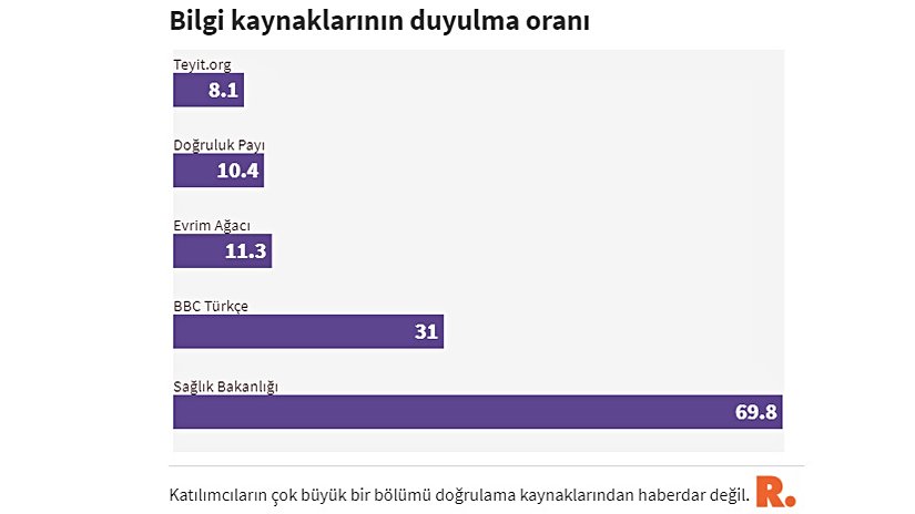 Gazete Duvar'dan Aynur Tekin tarafından aktarılan habere göre, bu çalışmanın sonuçlarına göre Evrim Ağacı, T.C. Sağlık Bakanlığı (%69,8) ve COVID-19 partnerlerimizden birisi olan BBC Türkçe'den (%31) sonra en çok duyulmuş bilgi kaynağı olarak (%11,3) kaydedildi. Listede Doğruluk Payı (%10,4) ve Teyit.org (%8,1) gibi yakından işbirliği içerisinde olduğumuz doğrulama platformları da yer alıyor.