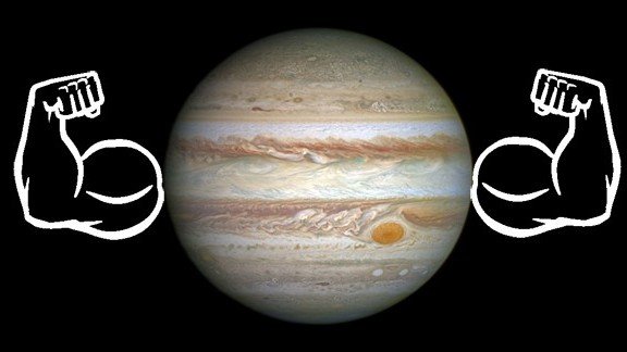 - Jüpiter, Güneş Sistemi'ndeki diğer tüm gezegenlerin toplam kütlesinin 2,5 katı büyüklüğünde olduğu için ortak kütleçekim merkezi Güneş yüzeyinin dışına taşınır.