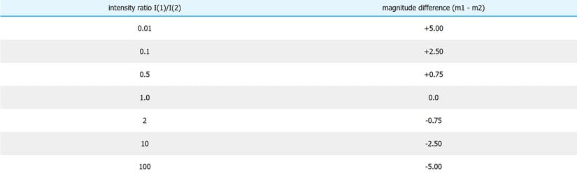m1−mref=−2.5log10IrefI1m_1-m_\text{ref}=-2.5\log_{10}{\frac{I_\text{ref}}{I_1}}