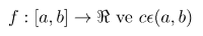 Eğer f fonksiyonu [a,b] kapalı aralığında sürekli ve a<b olduğu (a,b) açık aralığında diferansiyellenebilir bir fonksiyonsa (a,b) açık aralığında aşağıdaki koşulu sağlayan bir c değeri bulunur.