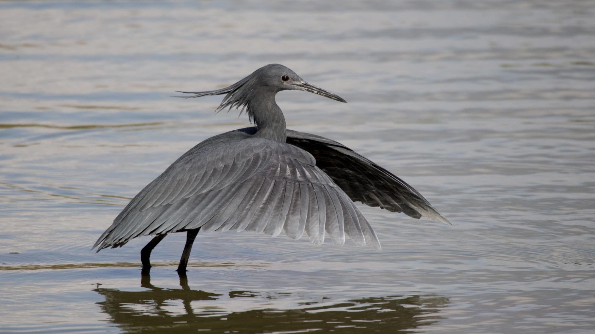 Aşağıdaki görselde gördüğünüz, avlanmakta olan bir kara balıkçıldır (Egretta ardesiaca). Ortalama 43-66 santimetre boyunda olan bu kuş, siyah tüylere ve sarı ayaklara sahiptir. Madagaskar da dahil olmak üzere Sahra Çölü'nün güneyinde kalan bölgede yaşar.