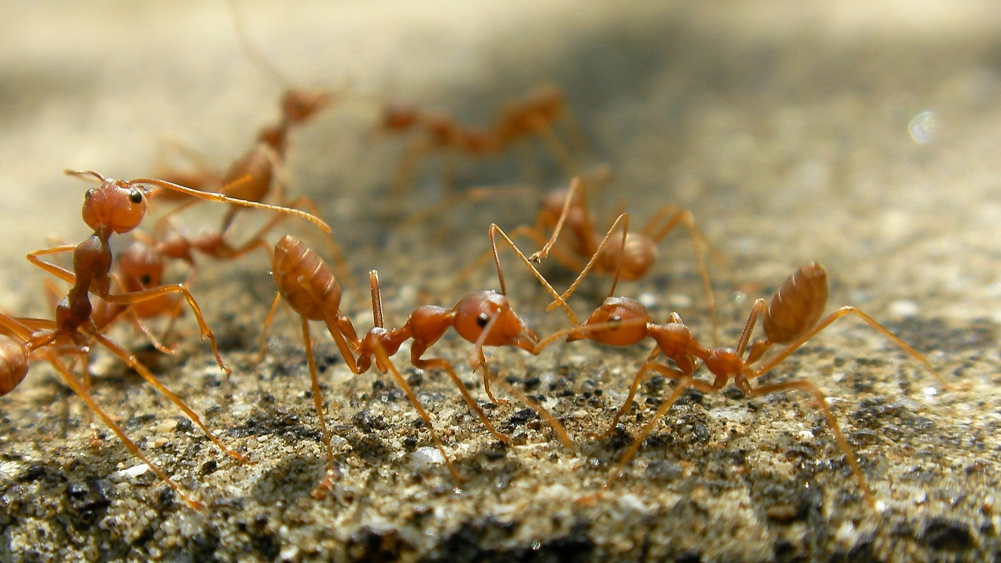 - Siyah ithal ateş karıncaları, laboratuvar ortamında yüzey gerilimi artırılmış şekerli sudan kum yapıları inşa ederek alet kullanımıyla besin elde etmeyi başarmıştır.