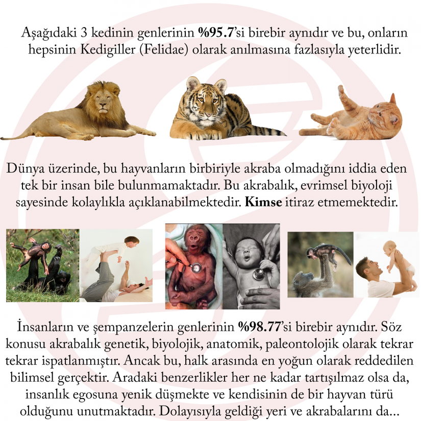 - İnsanlar ile diğer hayvanlar, özellikle primatlar arasındaki akrabalık ilişkileri, bilimsel verilerle güçlü şekilde desteklenmektedir.