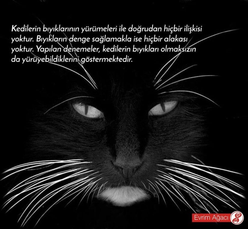 - Kedilerin bıyıkları yürümelerini veya dengelerini sağlamaz, bu işlev iç kulaktaki organlar tarafından gerçekleştirilir ve bıyıksız kediler de normal yürüyebilir.